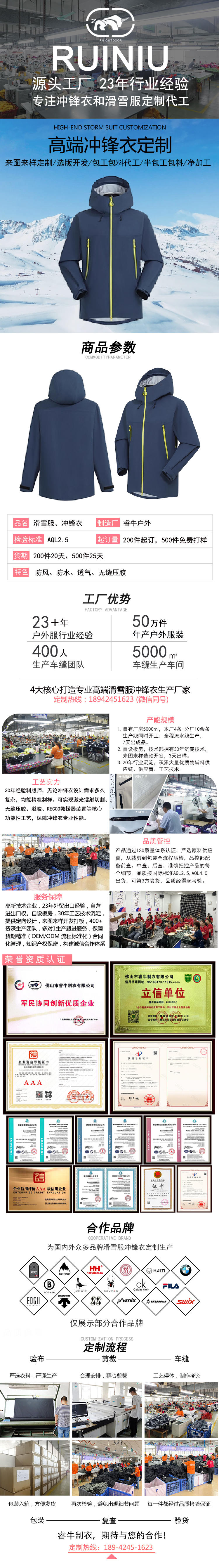 沖鋒衣工廠來圖來樣定制加工硬殼沖鋒衣