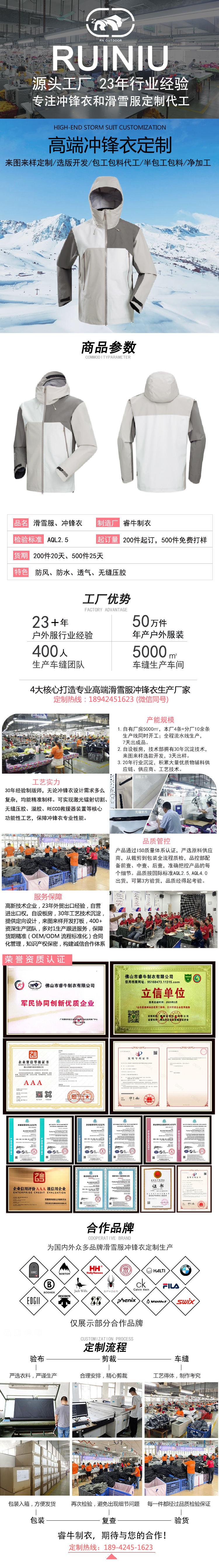 廣東睿牛戶外用品有限公司:專注沖鋒衣、滑雪服、風衣、夾克的梭織服裝定制加工廠家