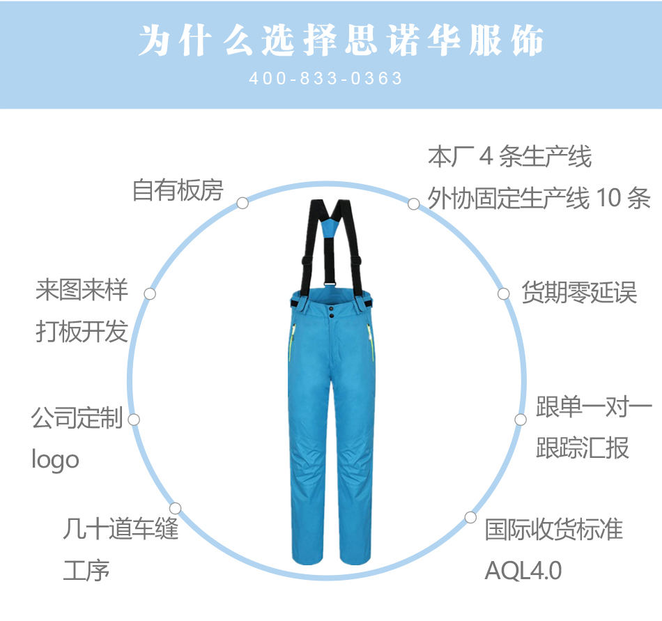 滑雪褲定制 擁有生產經驗豐富團隊,精準每處細節