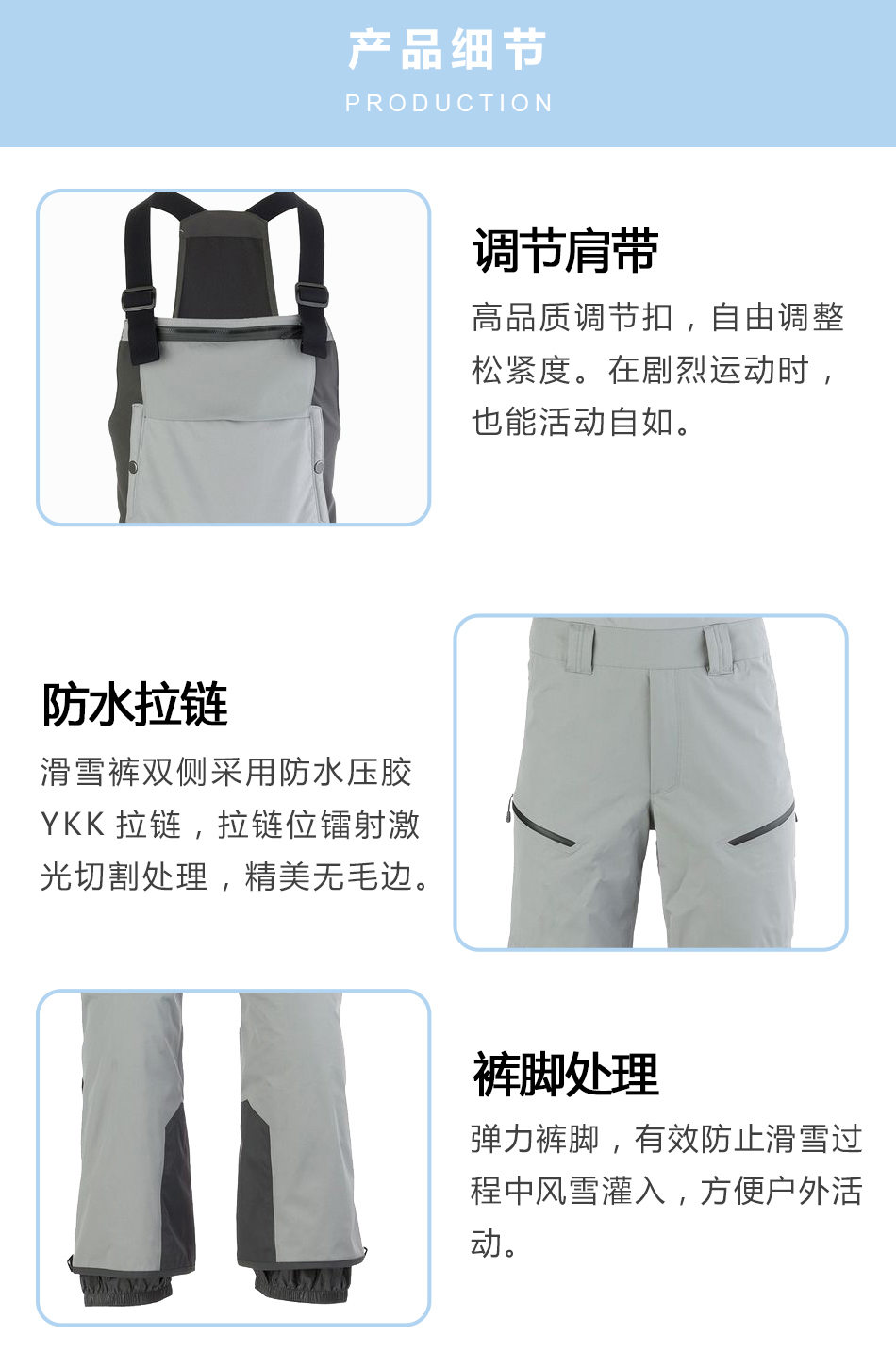 • 褲腳處理:彈力褲腳,有效防止滑雪過程中風雪灌入,方便戶外活動。