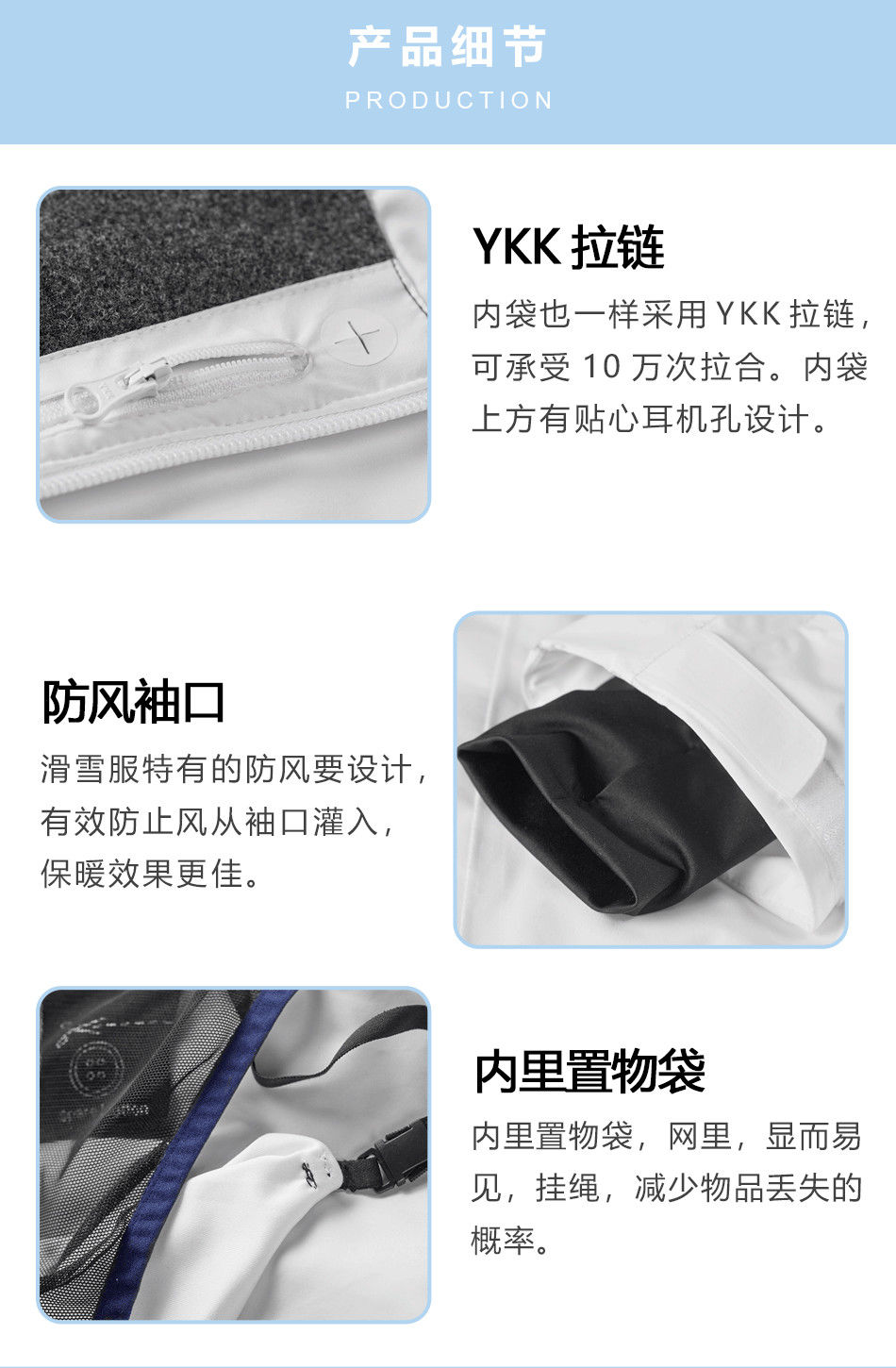 防風袖口:滑雪服特有的防風袖口設計,從袖口防止風進入身體,量身進行滑雪服定制